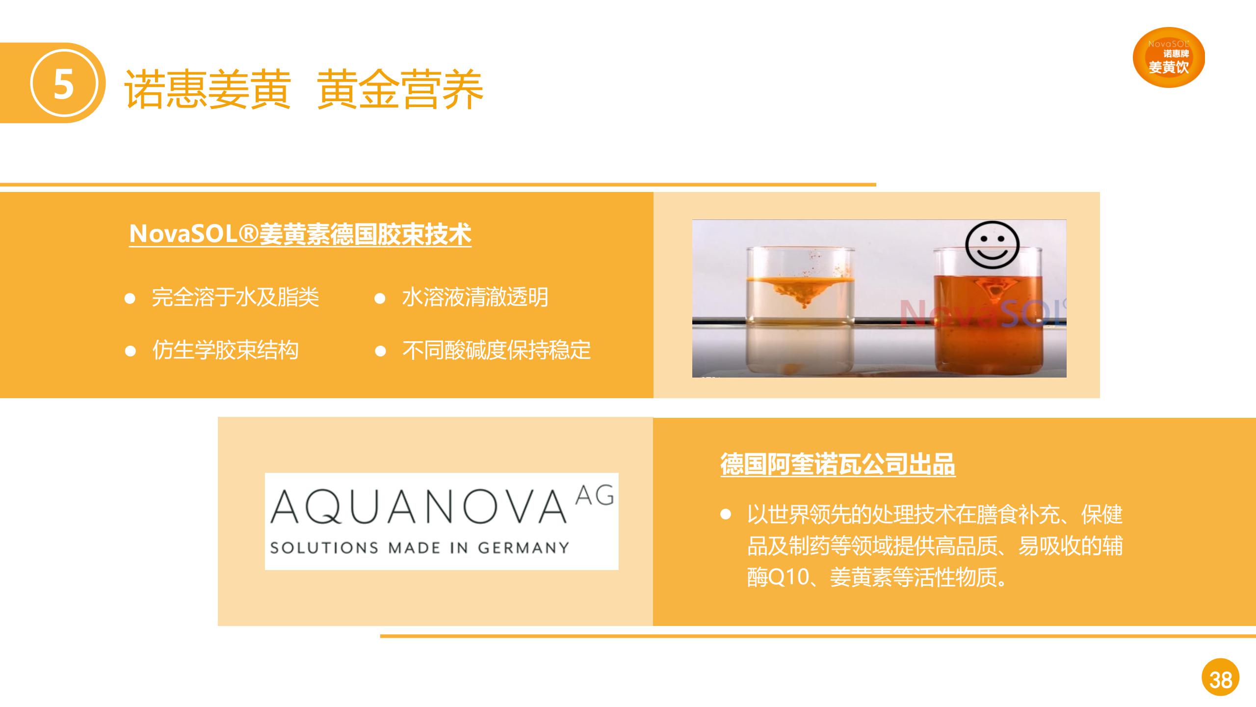 2014年发表于《分子营养和食品研究》的临床试验中,受试者服用了三种姜黄,姜黄原粉,微粒化姜黄,胶束化姜黄(诺惠),结果表明,诺惠姜黄的吸收度比姜黄原粉提高了185倍,峰浓度提高了455倍,达峰时间缩短了6.4小时。更值得重视的是,在服用24小时后,服用诺惠姜黄人群的血液浓度依然远高于姜黄原粉。